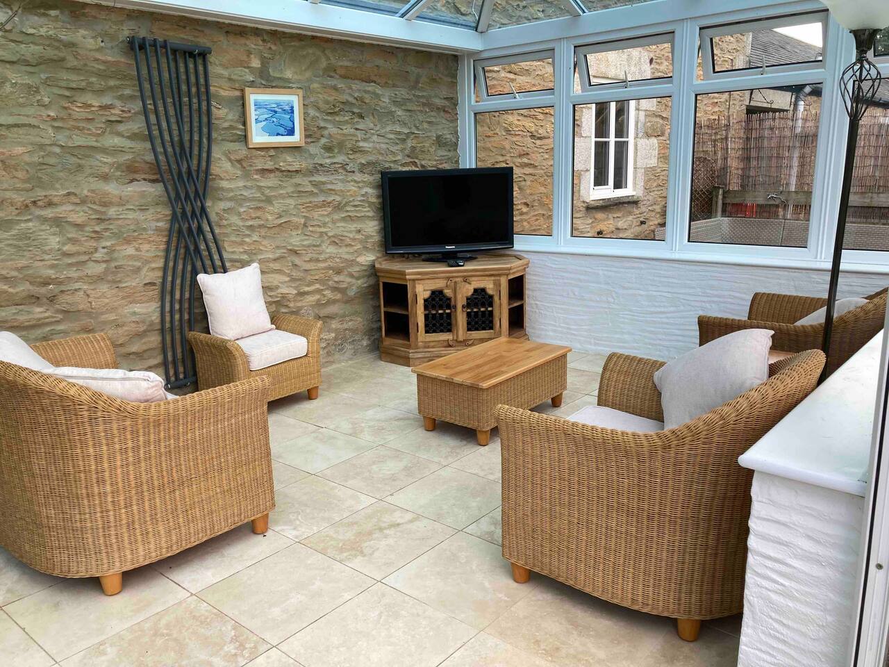 Pengelly Farm holiday cottages are a converted courtyard of 250 year old barns on a working beef suckler farm. Melyn is the largest of the cottages. Situated just 5 mins from the A30, the main arterial route through the county, everywhere is more than accessible. Melyn has four large bedrooms. You will enter the house through the conservatory, which has a dining area and a living area with TV. From here into the hallway, you go up the stairs to the large open plan kitchen/dining/living area.