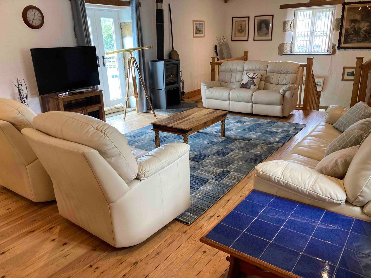 With a large west facing garden, this cottage has the best sunset view on the farm. There is ample space in the garden and patio for summer night BBQ's or winter dips in the large Hot Tub. Walking into the cottage through the conservatory which has heated floors and a dining table seating 6 and a TV. Walking through the hall way you will find three en suite bedrooms with ample space! Downstairs sleeps 8 across the three rooms and two of the bedrooms have doors out onto the central communal patio within the cottage complex. Heading upstairs to the kitchen/ dinning open plan room there is a log burner for those colder night and a Juliet balcony for the lovely summer evenings and another perfect sunset spot. There is a smart TV and a large dining table that seats all 11 persons. Off the living room is the final and fourth bedroom which has a king bed and a sofa bed, sleeping comfortably three persons. This cottage provides spacious living for 11 people, with enough space to be together, or to retire and have your own space. The house is extensively and fully equipped with everything you would expect in your own home and more. If there is something you find not provided, just holler, and within reason we will do our best to get it for you. Our aim is for you to thoroughly enjoy your stay with us.